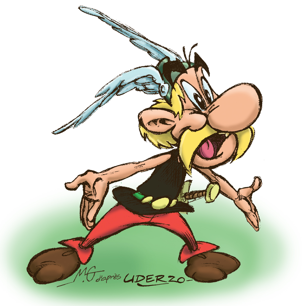 Hommage à son auteur graphique, Albert Uderzo (1927-2020), basé sur un dessin que j'ai réalisé en 2009, à l'occasion de l'inauguration d'une exposition sur l'œuvre de René Goscinny, à l'Alliance Française de Buenos Aires.