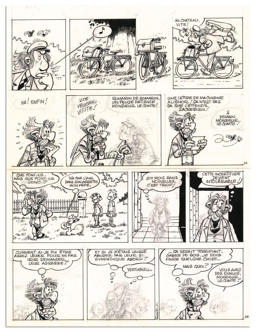 Ensemble de 5 planches originales inédites réalisées en 1981-1982 de Spirou et Fantasio pour l'histoire La Maison dans la mousse (2)