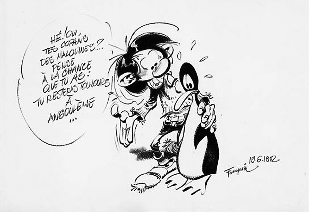 Illustration d'André Franquin, relative à la fin de la bataille des îles Malouines, en juin 1982
