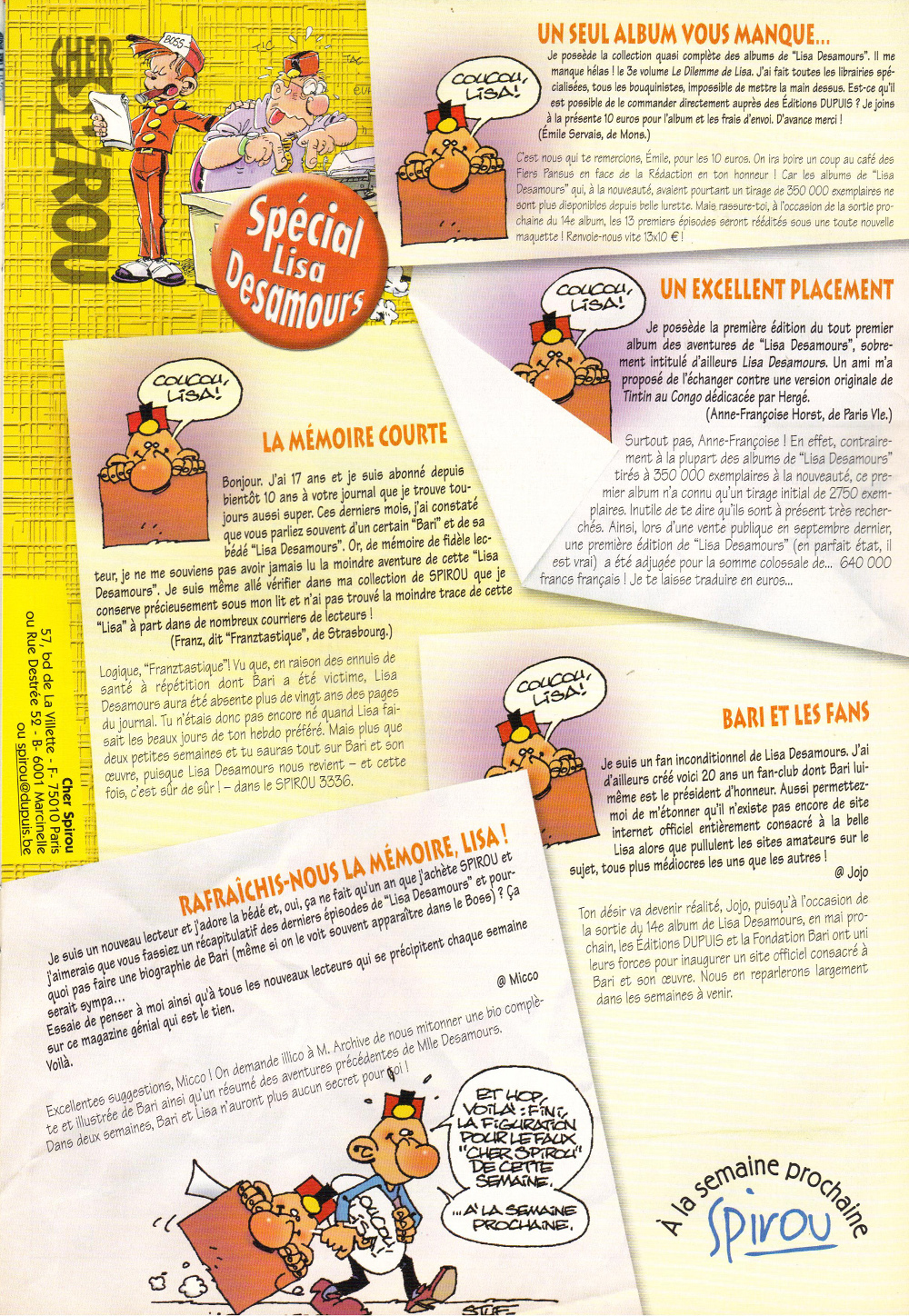 3334 du 6 mars 2002 Cher Spirou spécial Lisa Desamours1