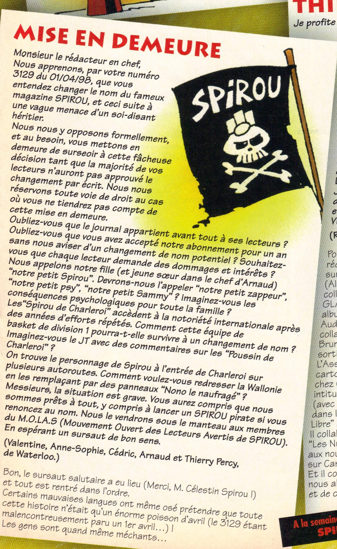 3130 du 8 avril 1998 animation Spirou ne sera plus jamais Spirou bis »»