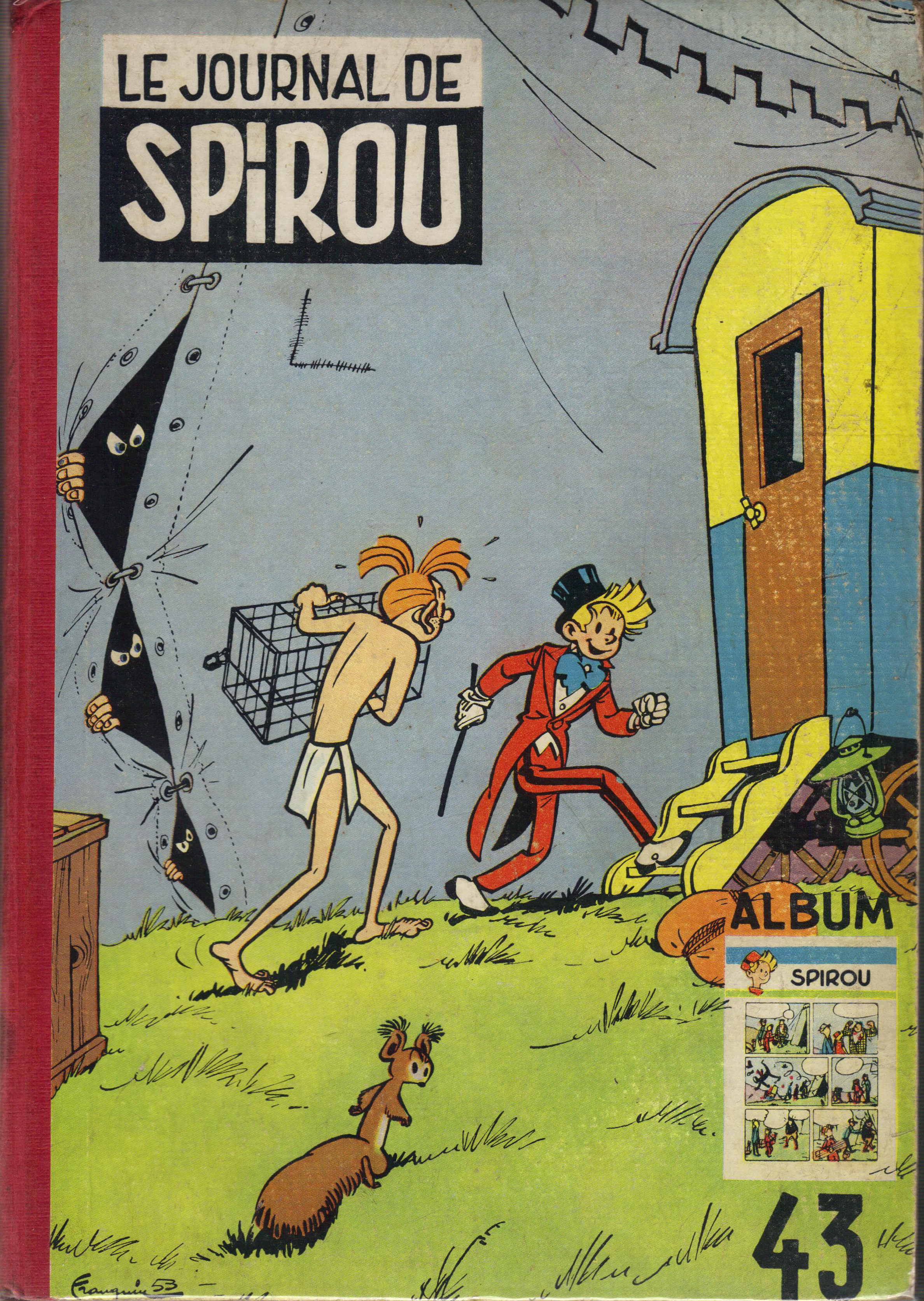 Où vois-tu le marsupilami dans la couverture 43 ? La cage est vide, les yeux ne sont pas ceux du marsu et pour cause puisque l'animal est enfermé dans une cage dans la roulotte. Alors bien sur le marsu est dans le petit médaillon imitant une page du journal, c'est vrai, mais bon... je crois que tout le monde avait compris que je parlais du dessin de couverture de Franquin qui, de toute évidence, ne comprend pas la petite image rajoutée par le maquettiste en bas à droite au dessus du numéro, comme on peut le vérifier si l'on a les cartes postales qui furent réalisées dans les années 80 sur la base des dessins de Franquin.