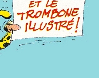 Par contre les dessins que réalisa Franquin en couverture du journal de Spirou à ce sujet restent inédits. C'est pour combler cette lacune que je vous propose cette nouvelle galerie qui vous présentera en ordre chronologique ces illustrations invitant au Trombone. Ces dessins ont été détourés de leur environnement de façon que ne subsiste que le dessin de Franquin et le fond de couleur sur lequel il était intégré. Parfois cela n'a pas été possible tant il était imbriqué dans d'autres éléments de la couverture... J'ai fait au mieux.